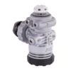 Die überbalancierte, membrangesteuerte erste Stufe ist ein Meisterwerk der Kaltwassertechnik. Das kompakte, trocken abgedichtete System verhindert jeglichen Kontakt der Mechanik mit dem Außenwasser. Innovative Wärmetauschrippen am gefrästen Gehäuse leiten die Kälte der Gasausdehnung effektiv ab, während die umspritzte Abdeckung die Stufe vor harten Stößen in engen Passagen schützt. Der drehbare Revolverkopf mit 5 Mitteldruckabgängen garantiert die perfekte Schlauchführung in jeder Sidemount-Konfiguration.